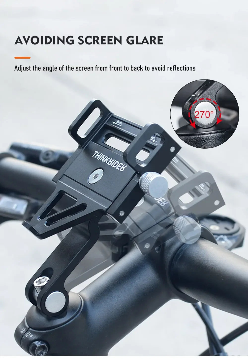 ThinkRider MTB Telefontartó – 270°-ban Forgatható, Alumíniumból Készült, Állítható Biciklis Telefontartó
